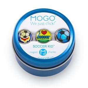 Soccer Kid Mogo Charms we just click. With over 400 magnetic Charms, including bling, alphabet and themed gift sets, there’s a super strong Mogo Charm for every mood. Mogo Charm Bracelets (sold separately) hold up to 8 Mogo Charms. Themed gift set 3 Charms in a magnetic, reusable gift tin. Not a Toy. For ages 8 and up.